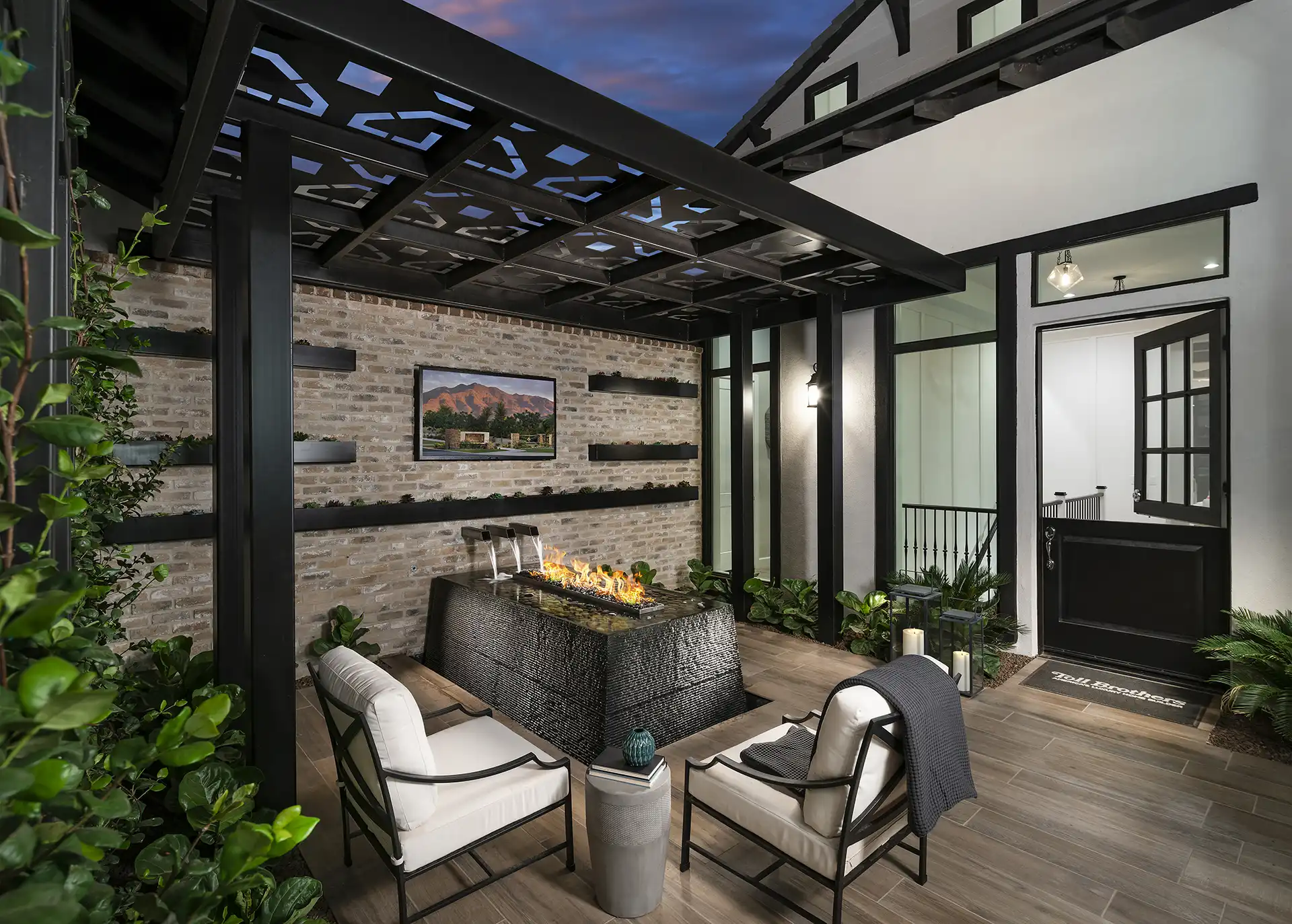 – Contemporary fire wall feature.