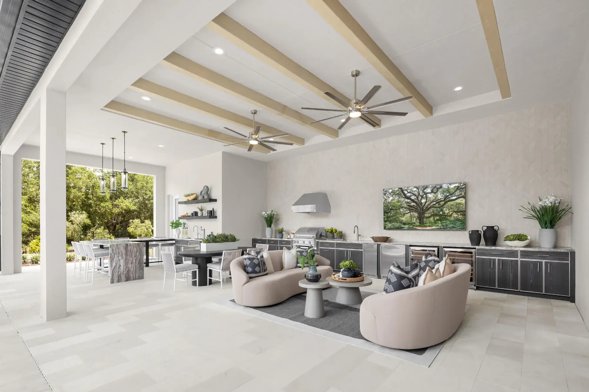 • Expansive Covered Outdoor Living Area with integrated ceiling fans and architectural beam accents