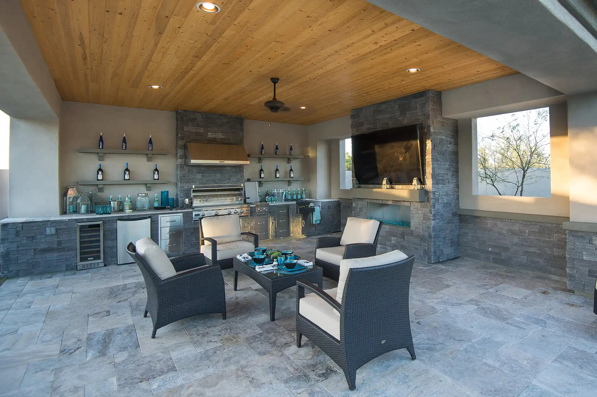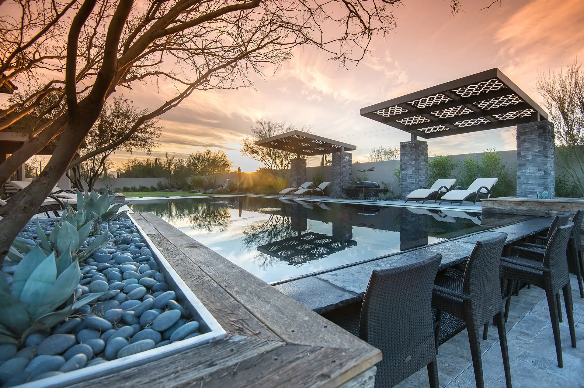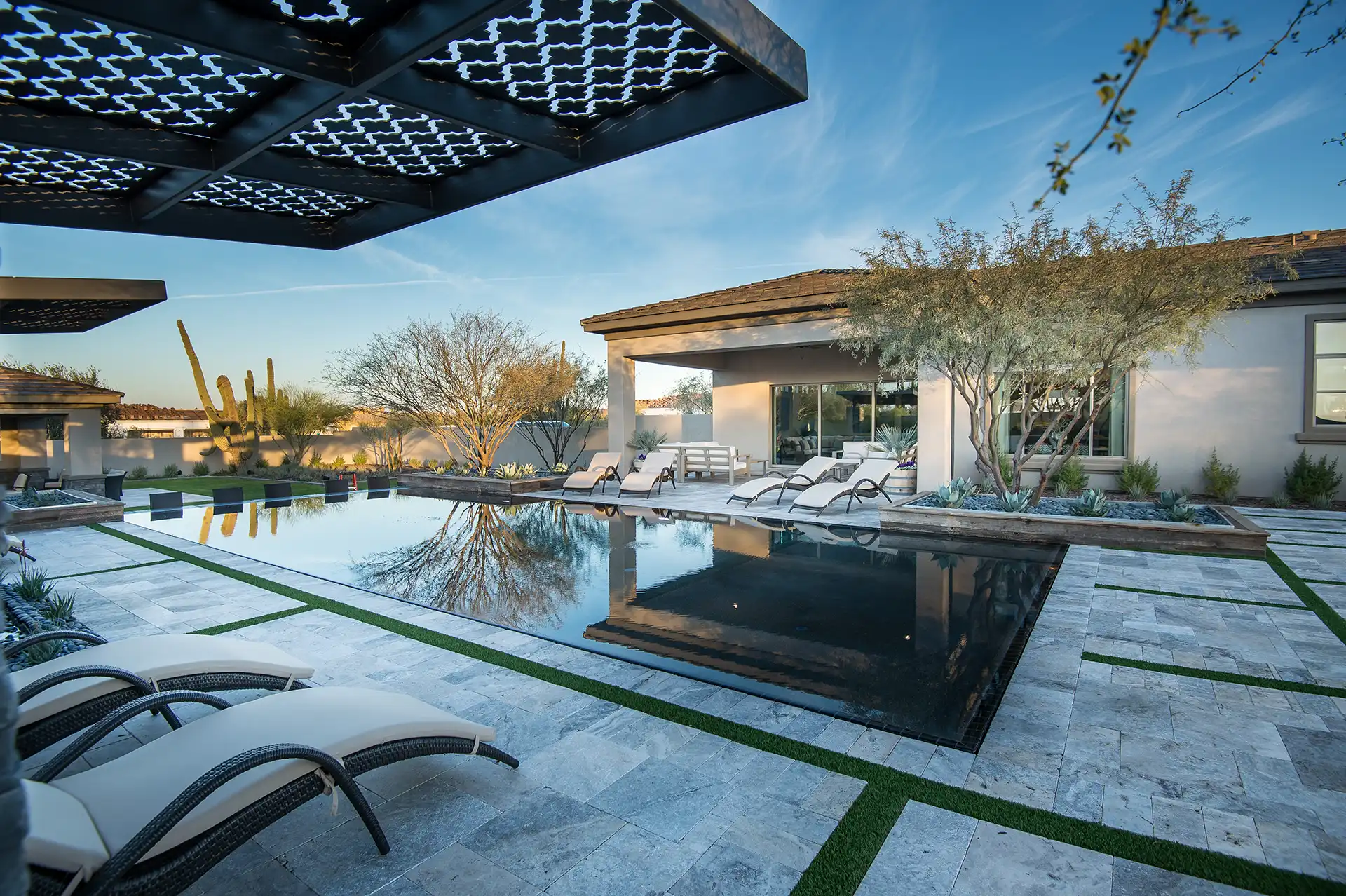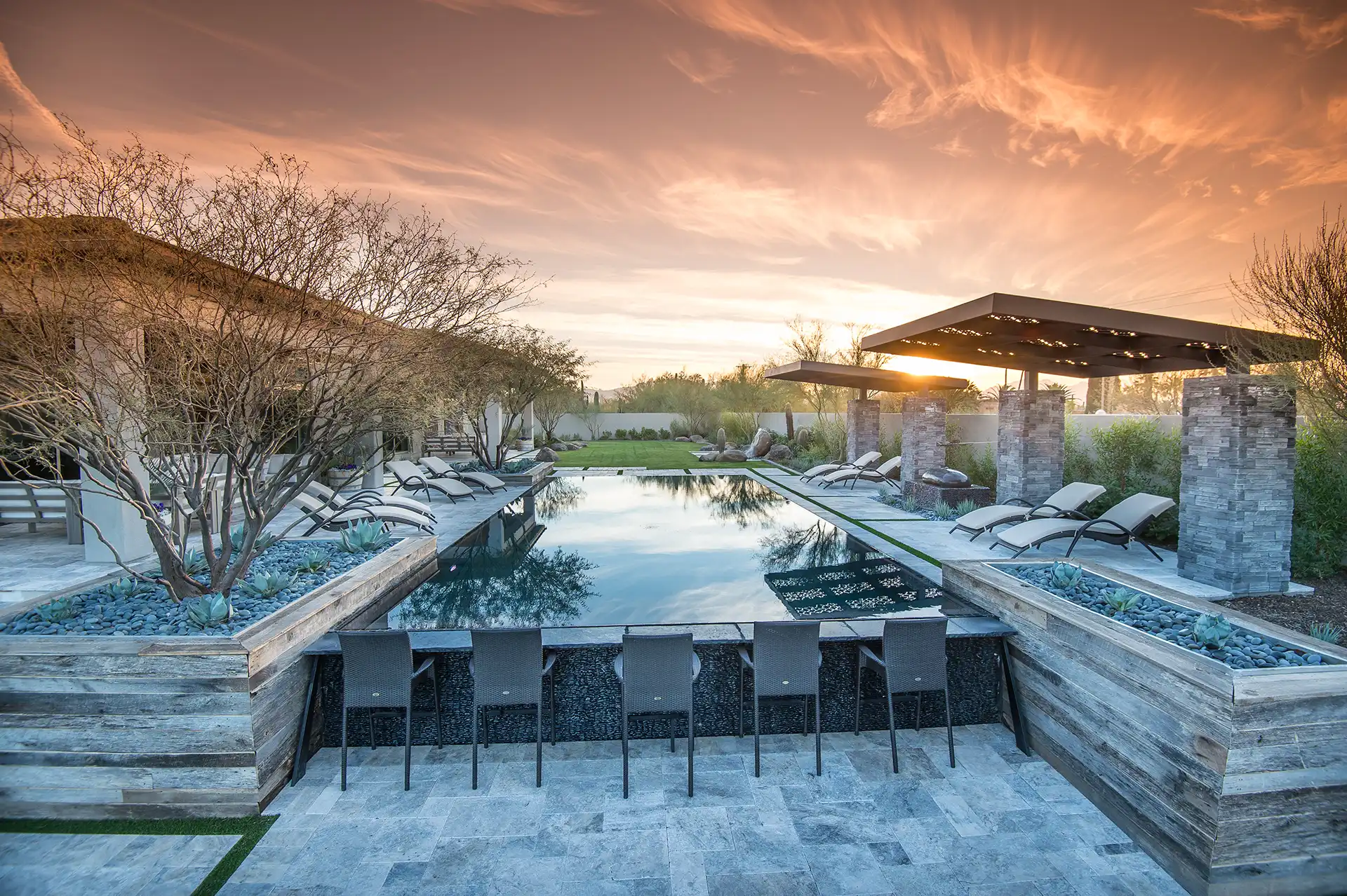 The Saguaro Estates reflects Creative Environments’ mastery in harmonizing luxury with Arizona’s desert aesthetic, creating an elegant and functional outdoor retreat.