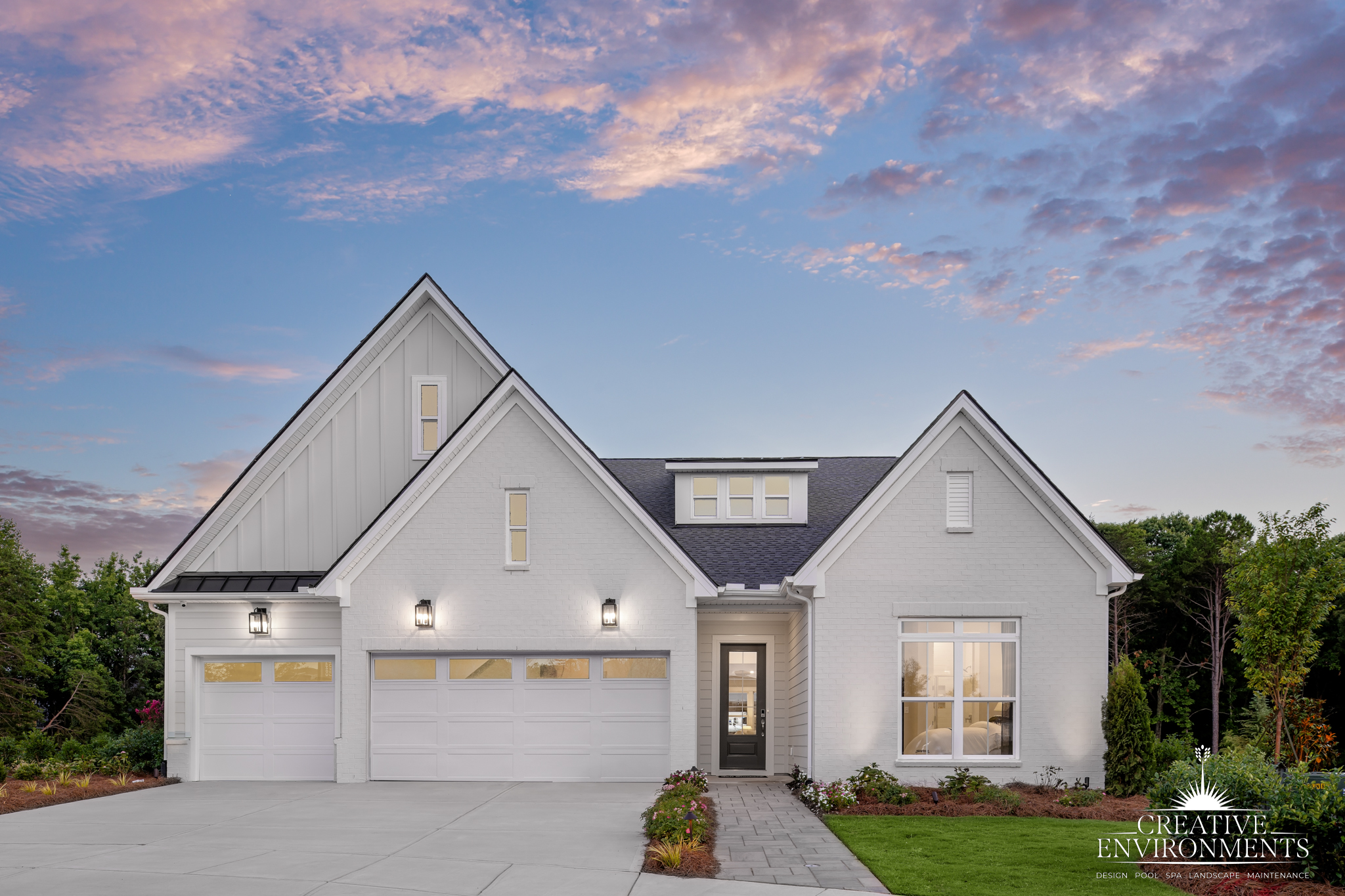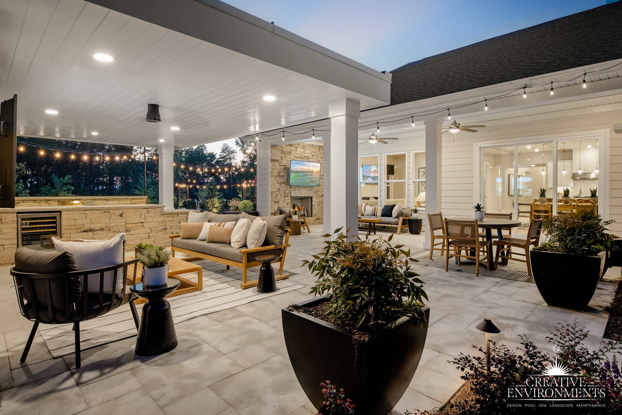 At The Williams, Creative Environments has crafted a sophisticated lounge patio that serves as the heart of the outdoor space. Carefully placed lighting and sculptural plantings frame the area, creating an elegant, functional retreat that feels like a seamless extension of the home.