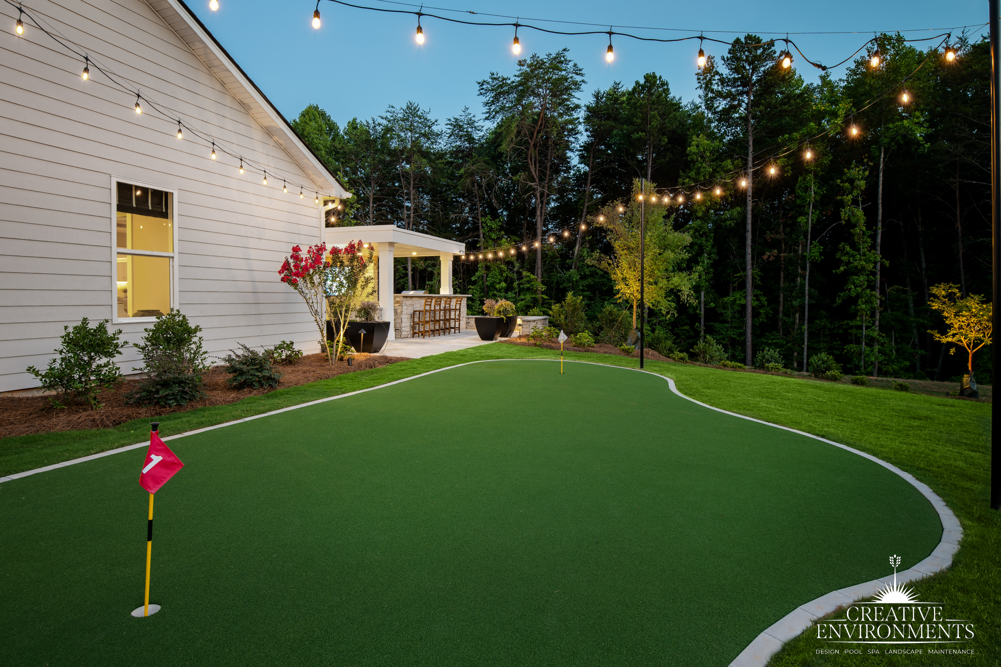 -A well-integrated putting green adds fun and casual recreation to the backyard.